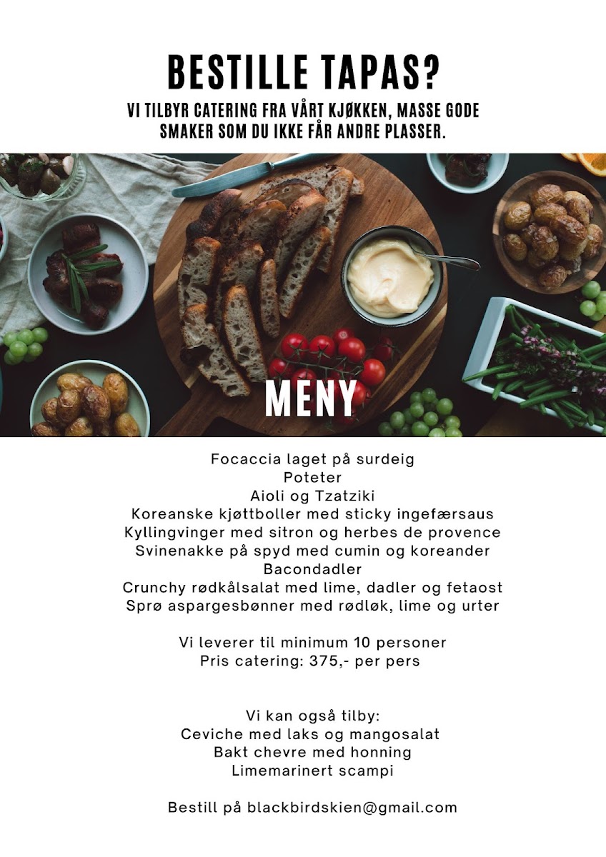 Welcome to Blackbird - Kafe og møteplass, a charming cafe nestled at Tømmerkaia 36 in Skien, Norway. The menu is a delightful canvas of handmade culinary creations that cater to all tastes, including those with dietary restrictions. Start your meal with a Kyllingsalat for NOK 209, featuring fresh ingredients that sing of quality.